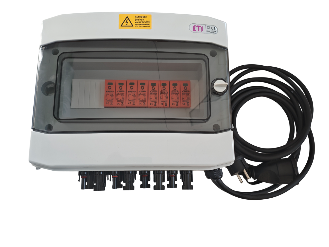 Schützen Sie Ihre Investition! Unsere innovative Lösung bietet einen zuverlässigen Überspannungsschutz für Balkonkraftwerke mit bis zu 4 Strings. Da moderne Batteriespeicher eine kostspielige Komponente Ihrer Anlage sind, fungiert unser Schutz als „Sicherheits-Schild“ zwischen den PV-Modulen und dem Speicher/Wechselrichter.